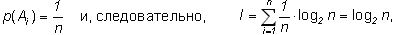 т.е. информация опыта равна среднему значению количества информации, содержащейся в каком-либо одном его исходе.
