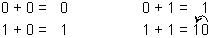 Сложение производится согласно таблице сложения, которая для двоичных чисел имеет вид: