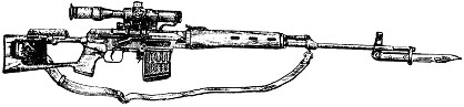 7,62-мм снайперська гвинтівка Драгунова є зброєю снайпера і призначена для знищення різноманітних одиночних цілей, що з’являються та рухаються, як відкритих так і маскованих (рис. 4.97, а). У рукопашному бою до гвинтівки може приєднуватись багнет-ніж. На озброєння прийнята у 1963 році.