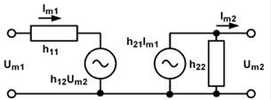 Эквивалентная схема биполярного транзистора с использованием h-параметров.