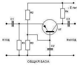 Схемы включения транзисторов. Всего таких схем применяется три: схема с общим эмиттером (ОЭ), схема с общим коллектором (ОК) и схема с общей базой (ОБ)