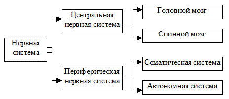 К центральной нервной системе относятся все нейроны головного и спинного мозга. К периферической нервной системе относятся все нервы, соединяющие головной мозг и спинной мозг с другими частями тела. Периферическая нервная система делится далее на соматическую систему и автономную систему (последнюю называют также вегетативной).
