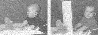 Рис. 3.3. Постоянство объекта.Если игрушку спрятать за экраном, младенец действует так, как будто ее больше не существует. Из этого наблюдения Пиаже делает вывод, что ребенок еще не освоил понятие постоянства объекта.
