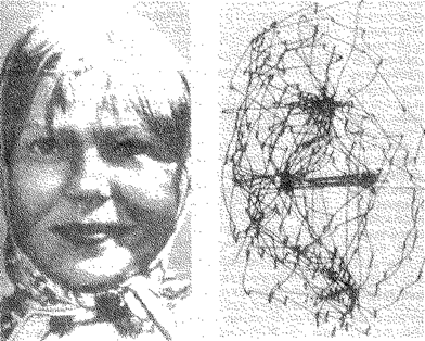 Рис. 5.21. Движения глаз при рассматривании фотографии.Справа от фотографии девочки показана запись движений глаз испытуемого во время разглядывания этой фотографии (по: Ярбус, 1965).