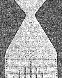 Рис. П4. Устройство для демонстрации нормального распределения случайной величины.Устройство держат вверх ногами, пока все стальные шарики не скатятся в резервуар. Затем устройство переворачивают и держат вертикально, пока шарики, пройдя по полю со штырьками, не скатятся в 9 колонок-выемок внизу. Точное количество шариков, попавших в каждую колонку, в разных демонстрациях будет неодинаковым. Однако в среднем высота колонок из шариков будет примерно повторять нормальное распределение, когда самая высокая колонка будет в центре, а высоты остальных колонок будут снижаться в направлении к краям.