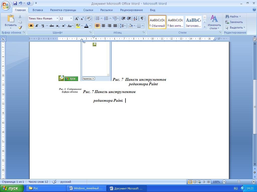 Часть рисунка можно скопировать в буфер обмена, чтобы затем перенести в другую программу. Для этого нужно предварительно выделить фрагмент один из инструментов: Выделение или Выделение произвольной формы. Для этого щелкните на одном из инструментов выделения фрагмента, а затем помните команду Правка - Копировать.Если вместо нее выполнить команду Правка - Вырезать,то фрагмент будет удален из рисунка, а затем помещен в буфер обмена. Вставить фрагмент из буфера обмена позволяет команда Правка - Вставить.Можно отметить и весь рисунок, выполнив команду Правка - Выделить все.Чтобы снять выделение, выполните команду Правка - Очистить выделение.