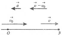 , то вектор прискорення буде протилежний до напряму руху і в даному разі відповідно до обраного напряму координатної осі Х проекція прискорення ах < 0 (мал.).