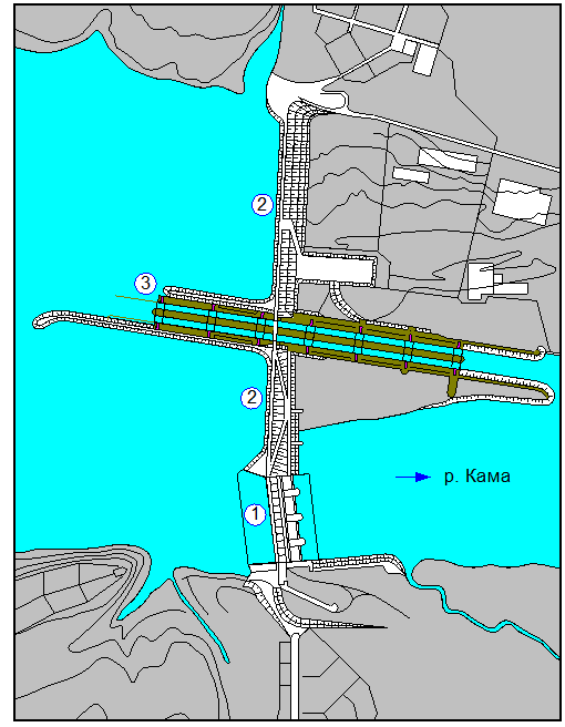 Схема Пермского гидроузла – схематический план гидротехнических