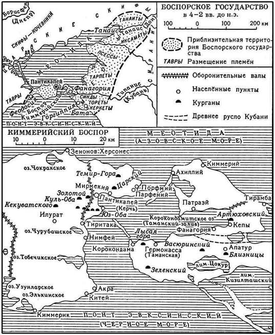 В 480 году до н. э. города восточного и западного побережий Боспора Киммерийского объединились, создав Боспорское царство со столицей в городе Пантикапей (современная Керчь). Это царство принято считать первым государственным объединением на территории нынешней России. Процветание Боспорского царства обусловливалось продажей в Грецию хлеба, выращиваемого на плодородных таманских (кубанских) землях. В обмен на хлеб из Греции поступали кузнечные изделия, одежда, оливковое масло, вино, ювелирные изделия, предметы быта.