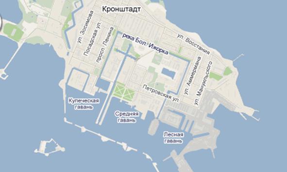 Расположение Петровских доков на острове Котлин