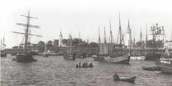 30 июля 1693 года с многочисленной свитой в Архангельск прибыл Петр I. Вид первого русского порта произвел на юного царя неизгладимое впечатление. Десятки иностранных купеческих судов стояли на реке против Гостиных дворов. Меж судов сновали сотни лодок, карбасов, барок, перевозящих людей и товары. В самом городе царила деловая обстановка, стоял многоязычный говор. В многочисленных лавках шла бойкая торговля русскими и заморскими товарами.