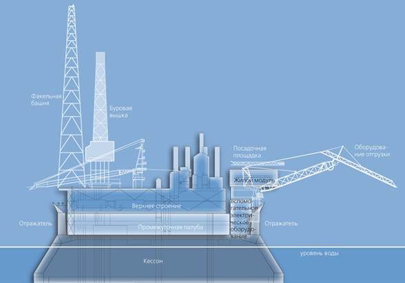 Морская ледостойкая стационарная платформа (МЛСП) «Приразломная» – основной элемент обустройства Приразломного месторождения – представляет собой многофункциональный комплекс, с помощью которого будут выполняться все технологические операции на месторождении: бурение скважин, добыча нефти и газа, хранение, отгрузка нефти на танкеры, выработка тепловой и электрической энергии.