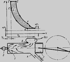 Теплота Q'1подводится при V=const на участке cz', а теплота Q»1— при постоянном давлении на участке z'z. В точке z подвод теплоты заканчивается. Далее следует адиабатное расширение по линии zb, в конце которого из всей подведенной теплоты Q1 в газе останется количество теплоты, равное Q2.
