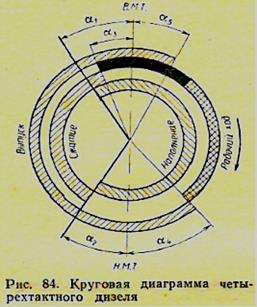 Угол опережения подачи топлива для дизелей в зависимости от их типа находится в пределах 150--330. на развернутой диаграмме это т.k. в т.m происходит воспламенение топлива. k-m --- есть период задержки самовоспламенения. За это время в цилиндр поступает 15-50 % топлива от цикловой дозы, которое успевает испариться и перемешаться с воздухом. Остальное топливо цикловой дозы поступает в камеру сгорания после т. m, т.е. поступает уже в среду охваченную пламенем.