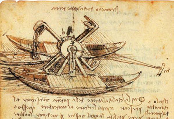 Для очистки каналов Леонардо изобрел драгу, помещаемую между двумя лодками и снабженную четырьмя лопастями. Лопасти приводились в движение рукоятью. По замыслу, собранный со дна ил складывался на плот, укрепленный между двумя лодками. При повороте колеса трос, привязанный к берегу, наматывался на барабан, что автоматически передвигало установку. Ось вращения барабана можно было установить вертикально. Тем самым регулировалась глубина выборки грунта.