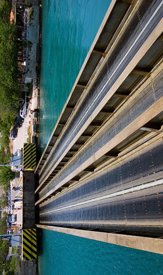 Длина составляет 6 км, ширина по зеркалу – 24 м, по дну – 21 метр, глубина 8 м. Стены канала естественного происхождения, главным образом из известняка, высота стен достигает 76 метров. Через канал перекинуты один железнодорожный и три автомобильных моста. Дополнительно с обеих сторон канала функционируют погружные мосты.
