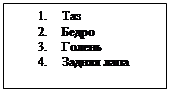 Грудная кость призматической формы, она сжата с боков и хорошо сигментированна. Грудина состоит из 8 сегментов, которые почти на протяжении всей жизни животного отделяются друг от друга толстыми хрящевыми дисками. При укорочении грудной кости длинна шага уменьшается, что сказывается на скоростных качествах животного (Б), а при удлинении – увеличивается, что приводит к быстрому утомлению и снижению выносливости животного (А). В норме, рукоятка грудины должна немного выступать в виде бугра за пределы плечевого сустава.