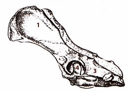 Крестец или крестцовая кость образованна крестцовыми 3 позвонками, которые служат местом прикрепления подвздошных костей таза и поэтому они в раннем возрасте (6 месяцев) срастаются, исключение составляют таксы, у некоторых из них бывает 4 позвонка. Крестцовая кость, тазовые кости и первые два хвостовых позвонка образуют остов крупа. Наклон крупа к горизонтали должен быть около 30° . Короткий круп приводит к слабости тазовых конечностей, увеличение угла наклона – к снижению продуктивности поступательных движений, деформации поясницы, подставу конечностей под себя, выворачиванию бедер и сближению скакательных суставов, а его уменьшение – к саблевидному поставу задних конечностей и нарушению биомеханики.