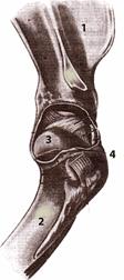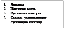 • бедра, представленного бедренной костью и коленной чашечкой, которая скользит по блоку бедренной кости;