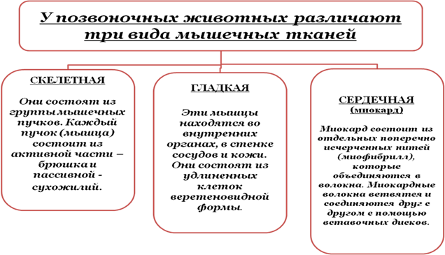 Мышечная ткань бывает трех типов в зависимости от типа расположения мышечных волокон: