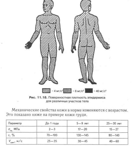 Механические свойства кожи зависят от содержания в ней влаги. Влажность окружающей среды существенно влияет на эластичность кожи. Все указанные особенности кожи необходимо учитывать при проведении реабилитационных мероприятий, в частности, при проведении массажа.