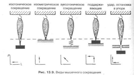 Естественные сокращения мышц в организме никогда не бывают чисто изотоническими или чисто изометрическими, так как мышцы, поднимая груз (например, сгибая конечность в суставе), укорачиваются и вместе с тем меняют свое напряжение.