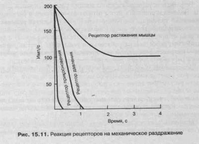 Хотя адаптация свойственна всем рецепторам, скорость ее у разных рецепторов различна (см. рис. 15.11).