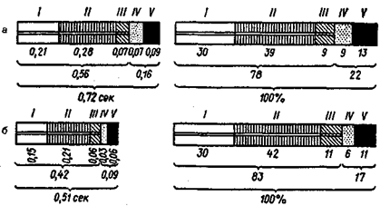 Различный ритм движений для лыжников при скользящем шаге (для пяти фаз шага) показан на рис. 3.12.