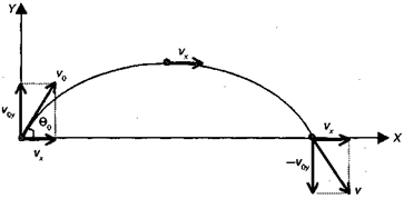 | Начальная скорость | v0x = v0·cos(θ0) | v0y = v0 ∙ sin (θ0). |