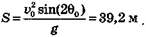 | Дальность полета для случая, когда точки броска и приземления находятся на одной высоте |