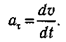 Если скорость тела, движущегося по окружности, изменяется по величине, то наряду с центростремительным ускорением ацбудет иметь место и тангенциальное ускорение at, рис. 3.20.