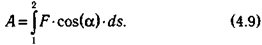 Это соотношение выполняется и в общем, случае, но работа вычисляется как интеграл от силы вдоль траектории движения от ее начальной точки (1) до конечной точки (2):