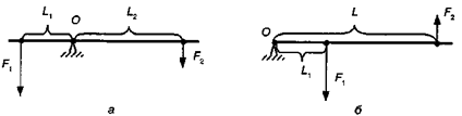 Рис. 7.13.Равновесие рычагов 1-го (а) и 2-го (б) рода