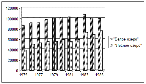 Аналогом турбазы «Белое озеро» в Барановичском районе стала турбаза «Лесное озеро» на озере Гать, введенная в эксплуатацию в 1976 г. Она обслуживала туристов в основном только по местным маршрутам (с 12–дневным пребыванием) и маршрутам выходного дня, а также самодеятельных туристов. Количество обслуженных туристов за 1976–1985 гг. на турбазе «Белое озеро» и «Лесное озеро» показано на рисунке 7.