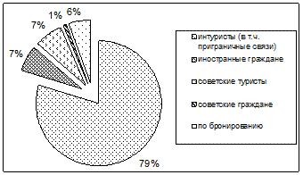 В связи с тем, что гостиница «Беларусь» не специализировалась на обслуживании иностранных туристов, их суммарное количество было незначительным по сравнению с другими туристами.