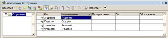 1. Создадим справочники для каждого из планируемых измерений адресации («Сотрудники», «Роли», «Подразделения»)