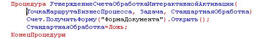 Рис. 2.201 Обработчик события «ОбработкаИнтерактивнойактивации» точки «УтверждениеСчета»