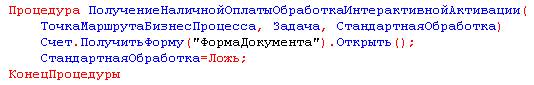 Рис. 2.203 Обработчик события «ОбработкаИнтерактивнойактивации» точки «ПолучениеНаличнойОплаты»