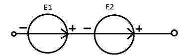 Е=Е1-Е2 (если Е1>E2, иначе - наоборот)