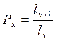 | Рx – вероятность прожить еще один год лицом в возрасте х лет; х – возраст; lx – количество лиц, доживающих до возраста х лет из 100000 родившихся; lx+1 – количество лиц, доживающих до возраста (х+1) лет; | |
