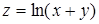 Так как логарифмы определены только для положительных чисел, то должно удовлетворяться неравенство х + у > 0, или у > - х.