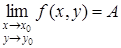 Если число А является предел функции f(х, у) при М(х, у) ® М0(х0, у0), то пишут