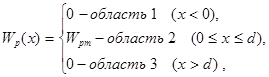 В данном случае потенциальная энергия частицы Wp(x) равна нулю всюду, кроме области 0<x<d (d - ширина барьера), где Wp(x) имеет постоянное значение Wpm– высота барьера. Таким образом