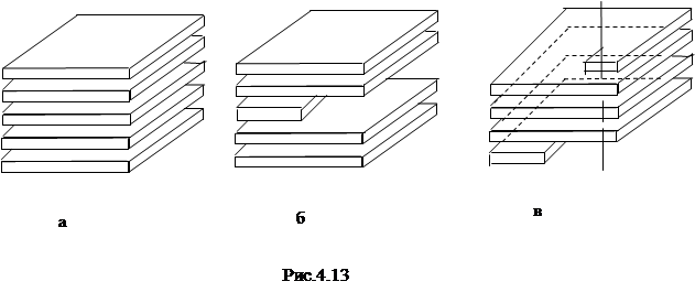 На рис.4.13,а изображено строение идеального кристалла в виде семейства параллельных друг другу атомных плоскостей. Если одна из плоскостей обрывается внутри кристалла (рис.4.13,б) то место ее обрыва образует краевую дислокацию.