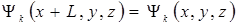 Поскольку кристаллическая решетка обладает свойством периодичности по координатам x,y,z, то и волновая функция (5.8) должна быть периодической по координатам с периодом h, то есть