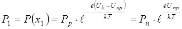 При уменьшении потенциального барьера до величины (8.50) концентрация дырок на границе р-n перехода и n –области (точка x1 на рис. 8.16 в) возрастет до значения