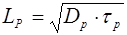 Величина LP, как отмечалось в § 7.5., называется диффузионной длиной неосновных носителей заряда (дырок). Как следует из решения (8.60) на расстоянии x=LP избыточная над равновесной концентрация дырок убывает в