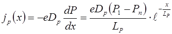 Найдем плотность диффузионного тока, вызванного градиентом концентрации дырок (8.62)
