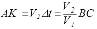 . В соответствии с принципом Гюйгенса фронт преломленной волны изобразится плоскостью KC, а направление ее распространения - лучом АК. Угол b между лучом АК и продолжением нормали ЕА называется углом преломления. Из прямоугольных треугольников АВС и АКС следует, что