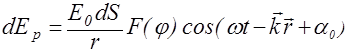 dS до точки P, E0 - амплитуда колебания вектора